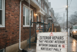 In Philly, exterior problems become interior damage fast—especially in winter when wind-driven rain finds every